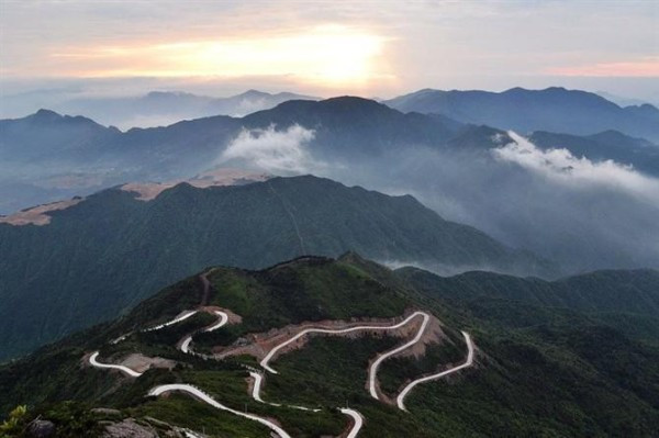 等到太阳完全升起,云雾散去,站在山顶远眺,就能看到我们来时的盘山公路。开车上来的时候只觉得山路蜿蜒,现在俯视公路,的确是九曲十八弯呢!