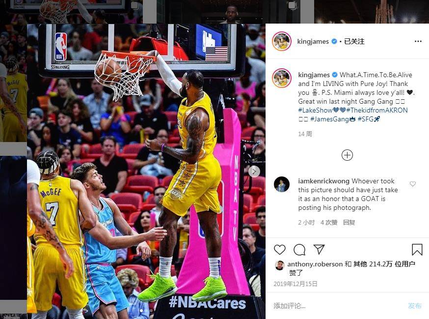 “活着真好,我在享受纯粹的快乐!感谢你!”詹姆斯当时写道。