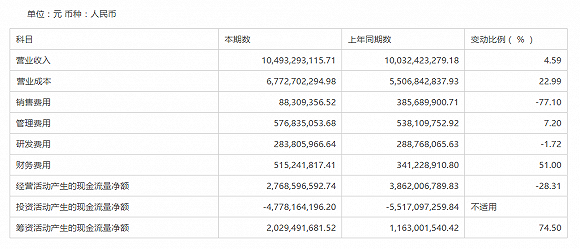 3月22日晚间,中国巨石(600176.SH)发布2019年年度报告,实现营业收入104.93亿元,同比增长4.59%;归母净利润21.29亿元,同比降低10.32%。公司拟10派1.93元(含税),预计派现金额合计为6.76亿元。