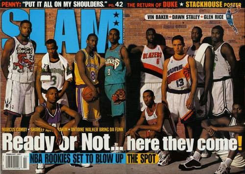 创办于1994年的《Slam》,是一本专业的篮球双月刊杂志,《Slam》的封面诞生了包括96黄金一代合照(上图所示)在内的许多经典照片,并且目前仍在出版,最新一期为总第228期(九月/十月刊),封面人物为锡安或苏-伯德或詹姆斯等人。