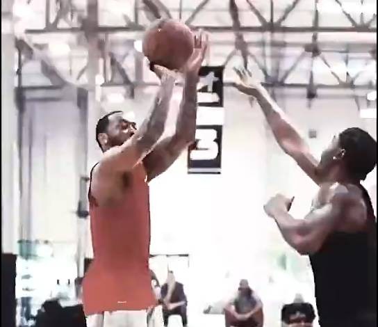 视频中的沃尔与欧文、勒韦尔、丁威迪,小乔丹等一众篮网球员一同训练,打得有模有样。