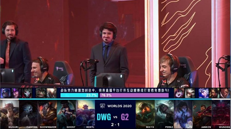 【21:30】DWG果断动手大龙但被G2前来开团,G2将女坦成功击杀;