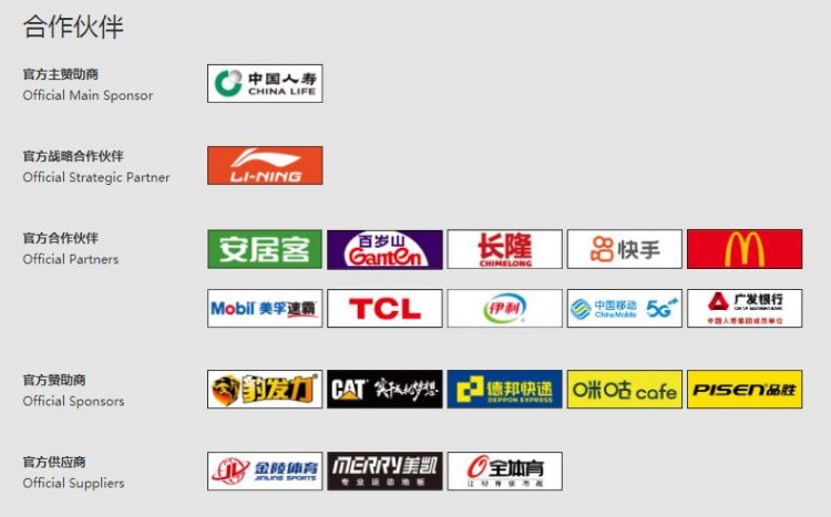 众多赞助商中,中国人寿是官方主赞助商,今年他们和CBA续约3年,每年的赞助金额未知,不过双方的上一份赞助协议是3年10亿元;李宁是官方战略合作伙伴,他们2017年和CBA签下5年10亿元的赞助协议,年均赞助2亿元;安居客、百岁山、长隆、快手、麦当劳、美孚、TCL、伊利、中国移动和广发银行10家企业为官方合作伙伴,豹发力、卡特彼勒、德邦快递、咪咕咖啡和品胜5家是官方赞助商,金陵体育、美凯和全体育是官方供应商,据国内媒体估算,官方合作伙伴的年赞助金额3000万起步,官方赞助商1500万起步,官方供应商600万起步。版权方面,CBA今年4月份和咪咕续签了一份5年超过20亿元的破纪录续约合同,年均可以获得4亿元。