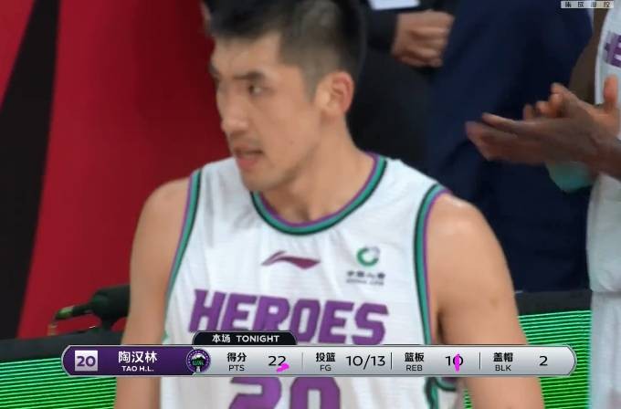 全场,陶汉林出战了37分钟,投篮13中10拿到了23分11篮板2封盖的数据。