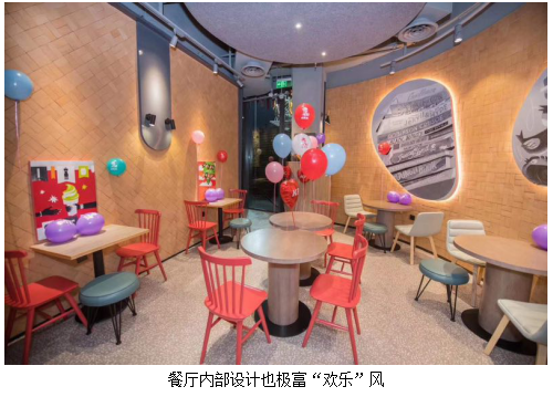 这家餐厅的设计理念脱胎于大武汉之“热”和欢乐谷之“乐”。从餐厅外观到内部设计,随处可见以“因炎热而化成一滩的冰淇淋”和“快乐微笑弧线”为主的设计元素。
