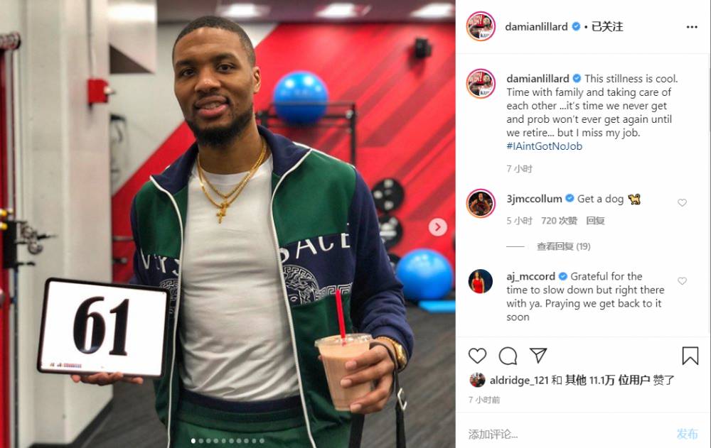 3月26日讯 今日开拓者球星利拉德在其个人社媒发文,呼吁人们珍惜这段因疫情长期居家而与家人共度的时光。