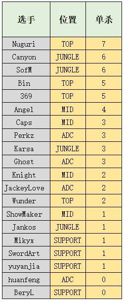 单杀次数: