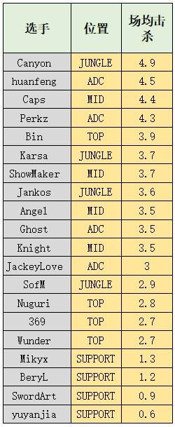 场均击杀: