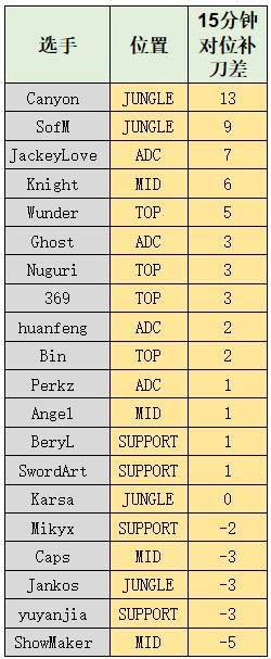 场均15分钟补刀差: