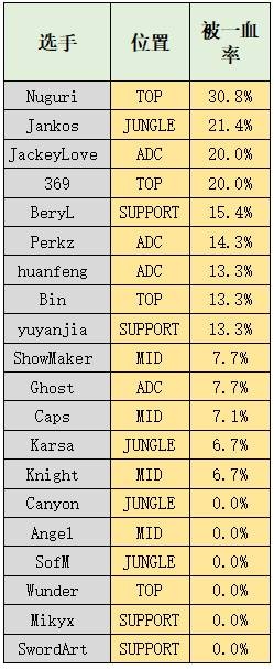 战队数据—S10四强赛队伍数据对比 DWG多项数据稳居第一,SN一血率达到惊人的73%