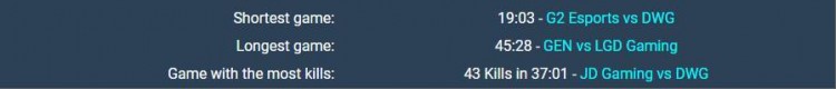 小组赛用时最短比赛:G2vsDWG 19:03