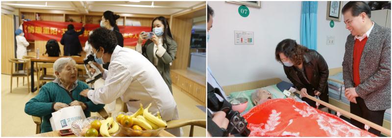 老吾老,以及人之老。在一年一度重阳节来临之际,10 月 24 日上午,为弘扬中华民族尊老敬老的传统美德,关爱老人眼健康,著名表演艺术家、「艾格视力健康大使」陆鸣老师与武汉艾格眼科医院的医疗队一行人先后来到花桥、西马街社区卫生服务中心,走进养老院看望慰问老人,为每位老人带去了精美礼物,还进行了爱心公益眼健康普查,送上了一份特别的节日关怀。