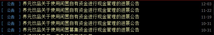 自10月31日至12月3日,养元饮品发布了5条《关于使用闲置募集资金进行现金管理的进展公告》。