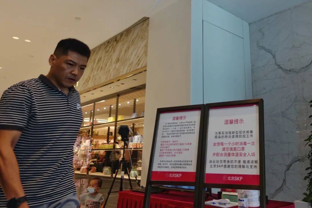 曹导:我拍视频的时候,北京已经四五十天没有新增病例了,没看到商场门口有提示牌。整个过程中,没有任何商场工作人员跟我说有专门的外卖取餐点。