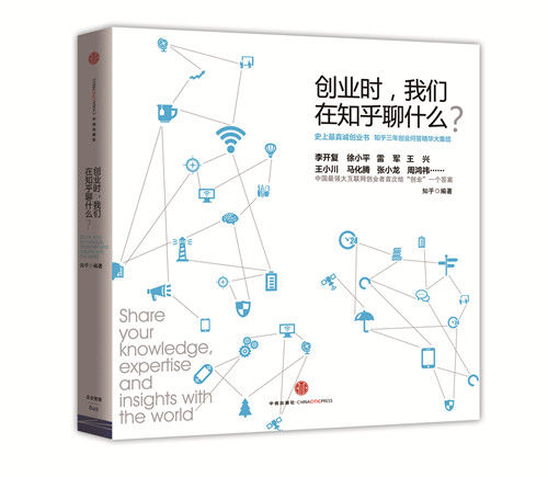 《创业时,我们在知乎聊什么?》,是将知乎运营三年以来将有关创业的问题和回答整理而成并结集出版。因此这更像是一本从头到尾都通过众筹完成的书:内容来自于知乎网站上用户所产生的问答记录,而筛选的编辑就是知乎的点赞机制;到了出版环节,1000名知乎用户成了这本书的联合出版人。