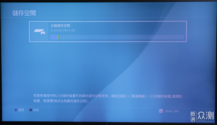 这块光威480G,在PS4系统下识别为390GB。6.20固件安装完毕后,系统占用21G+。