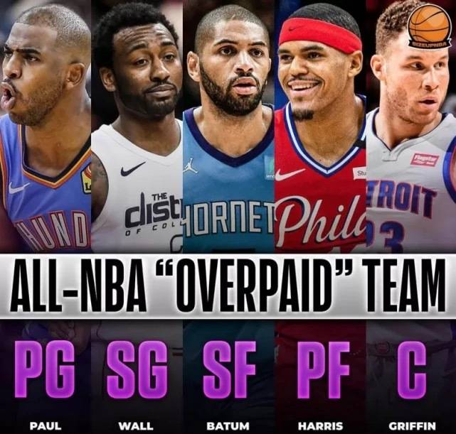 3月26日讯近日有美媒评出NBA现役的“overpaid team”阵容,也就是说实力与薪资不匹配的“溢价合同”阵容: