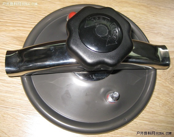盖锅盖时,要将弹性压力承载梁旋入卡槽,放在正确的位置后顺时针转动旋钮,以确保锅盖扣紧。由于有弹性压力承载梁,即便在排气孔堵塞,弹性梁也会变形弹起,让锅内多余压力从锅盖四周泄出,不会有爆炸危险。