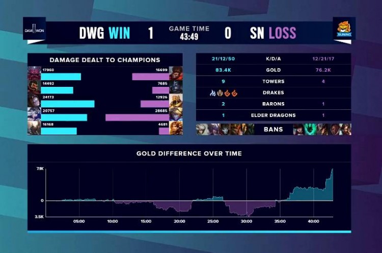 【23:40】在中路SN虽然拼尽全力秒掉了辛德拉,但是后续DWG拉扯团战一波团灭了SN后拿下大龙!