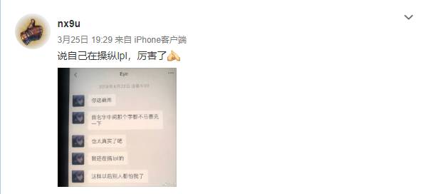 随后放出了这位“庄家”的聊天记录:说自己在操纵lpl,厉害了
