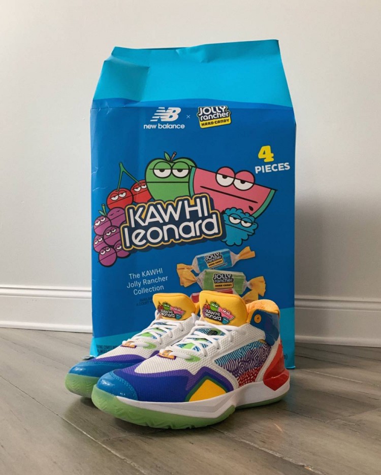 11月1日讯今日球鞋媒体《B/R Kicks》在社媒晒出新百伦与糖果品牌Jolly Rancher推出的联名款“The Kawhi” 篮球鞋和糖果。