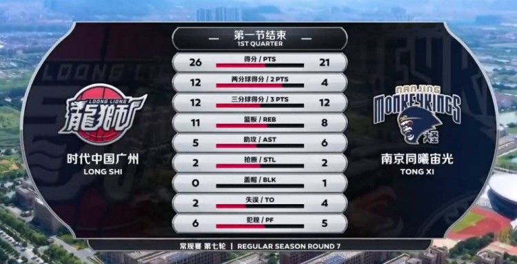 首节开局榜眼秀祝铭震上来就是一记三分为广州拔得头筹,而同曦则是外援摩尔特里的两罚一中打开局面。同曦开局不断冲击篮下收效不错,加上曹飞随后的三分进球,同曦和广州打的有来有回一直交替拿分。不过广州这边得分点更多,陈盈骏一内一外连拿5分,孙鸣阳连拿4分帮助广州逐渐拉开比分。末段对决同曦外线突然开火,李盛东和孙思尧联手命中三记三分追上比分,不过广州这边郑准同样回敬三分,首节结束时广州手握5分领先。
