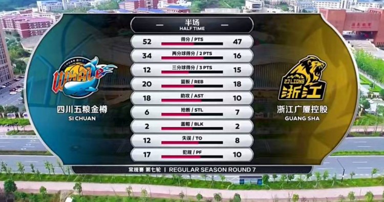次节回来,拉杜利察跳投得手先取两分,韩硕弧顶三分立刻回应,拉杜利察手感火热跳投还进,韩硕弧顶三分张手就有,哈达迪予取予求连得五分,韩硕制造犯规三罚全中,赵嘉仁加速突破上篮得手,袁堂文反击妙传助飞哈达迪,朱俊龙空位三分立刻回应,苏若禹无视防守跳投取分,李京龙联手胡金秋连进三分,哈达迪手感火热对飚拉杜利察,袁堂文空位三分压哨命中,半场战罢,四川52-47守住优势。