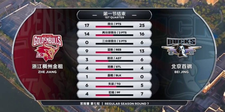 首节开局朱彦西和张大宇这两位内线球员分别拿分为各自主队取得第一分,两支实力强劲的球队防守做得都很不错,浙江受限找不到机会,北京虽然依靠朱彦西的发挥取得领先但前4分钟里也才拿到6分。浙江的开局打得异常艰苦,外线迟迟打不开的他们依靠着张大宇的2+1才打破僵局。北京则在随后逐渐找到感觉,李慕豪的进球和方硕一条龙2+1逐渐拉开比分。最后时刻双方展开对飚,吴前个人能力干拔命中远投,回过头来刘晓宇一个弹道看着歪但打板命中压哨三分,北京首节25-17领先浙江。