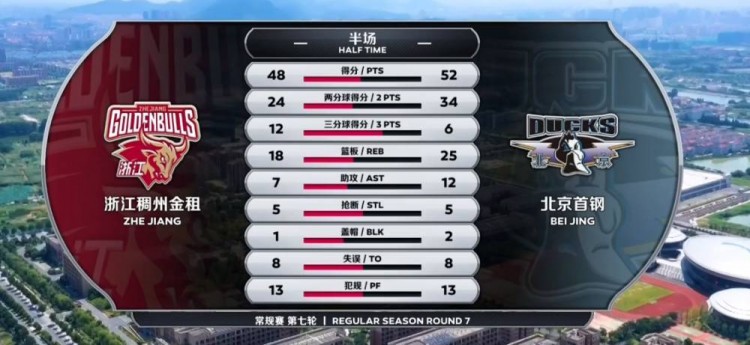 次节开局双方均是打三分得手开局,不过北京方面李慕豪的加罚没能命中。首节的落后导致浙江开局相对被动,朱旭航的三分帮助浙江打破僵局,随后王奕博也在反击中得分紧追比分。奈何北京表现默契稳定输出,汉密尔顿在内线拿下4分,方硕更是面对吴前防守再一次打成2+1,北京转瞬之间又一次确立起两位数领先,这期间王晓辉肘击赖俊豪导致后者面部出血退场,而王晓辉则被吹了违体犯规。末段吴前扛着浙江前进,他完全凭借个人能力命中两记三分和一记2+1,浙江在半场结束前将分差追至4分。