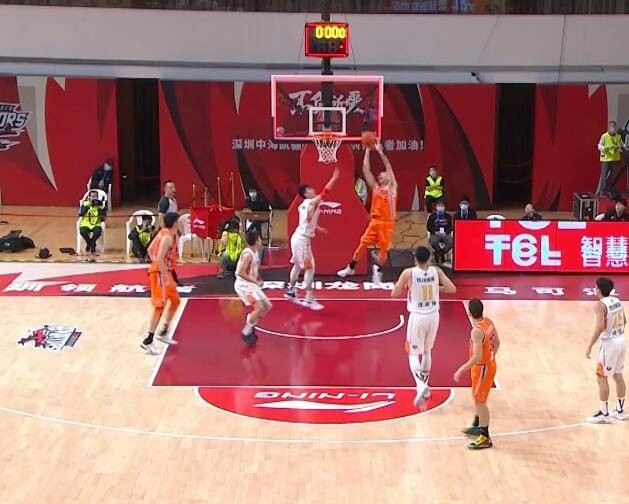 裁判随后看了录像回放,最终做出判罚,刘铮的补篮超时,深圳两分险胜上海!