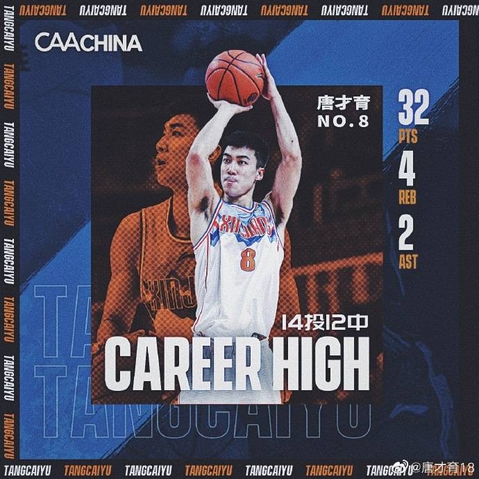 11月2日讯 CBA常规赛,新疆117-106击败天津。赛后,新疆队球员唐才育更新个人社交媒体,表达了对这场比赛的感受。