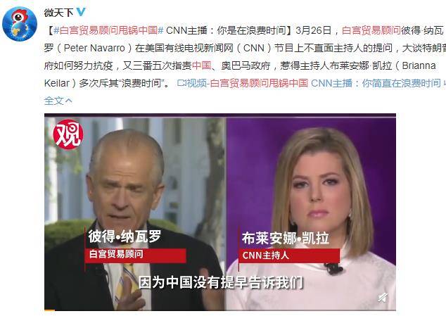 白宫贸易顾问甩锅中国 CNN主播:你简直在浪费时间2020-03-27 13:37:07 微博