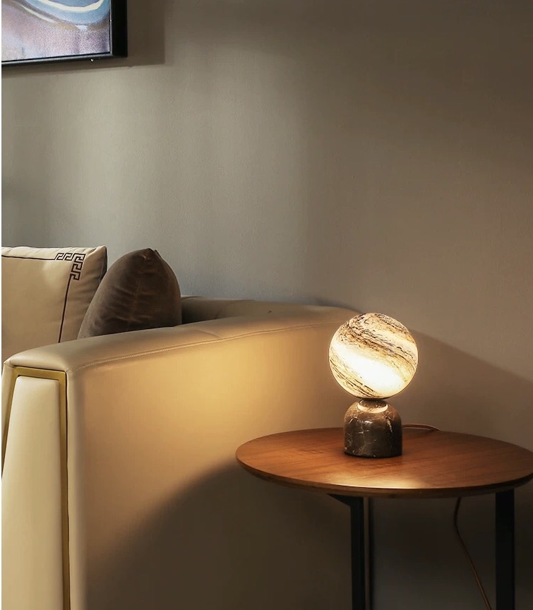 从外形来看,它就像一颗旋转的星球,在静谧的夜晚给人一种安逸之感。据了解,这盏台灯有地球款、土星款、月球款和奶白球款。它散发出柔美的灯光,让家居空间具有现代感和艺术感。同时,大理石的底座,又让这盏台灯极具质感。