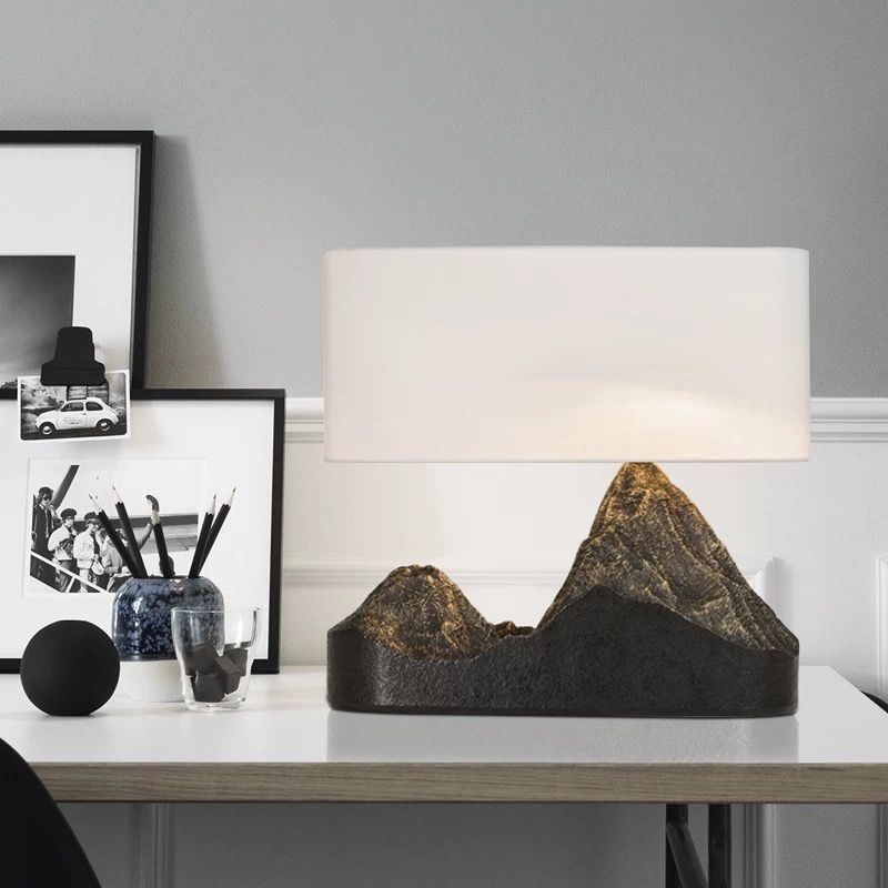 近年来,新中式风格的家居空间备受欢迎,这样的家居空间中,或许需要一盏中式风格的创意灯饰。这款台灯外形是一座小山,简约的风格像一个艺术装饰品。据了解,这款台灯灯体采用树脂材质打造,表面光滑圆润,而灯罩则采用布艺灯罩制作,透光均匀,看上去有一种朦胧的意境。