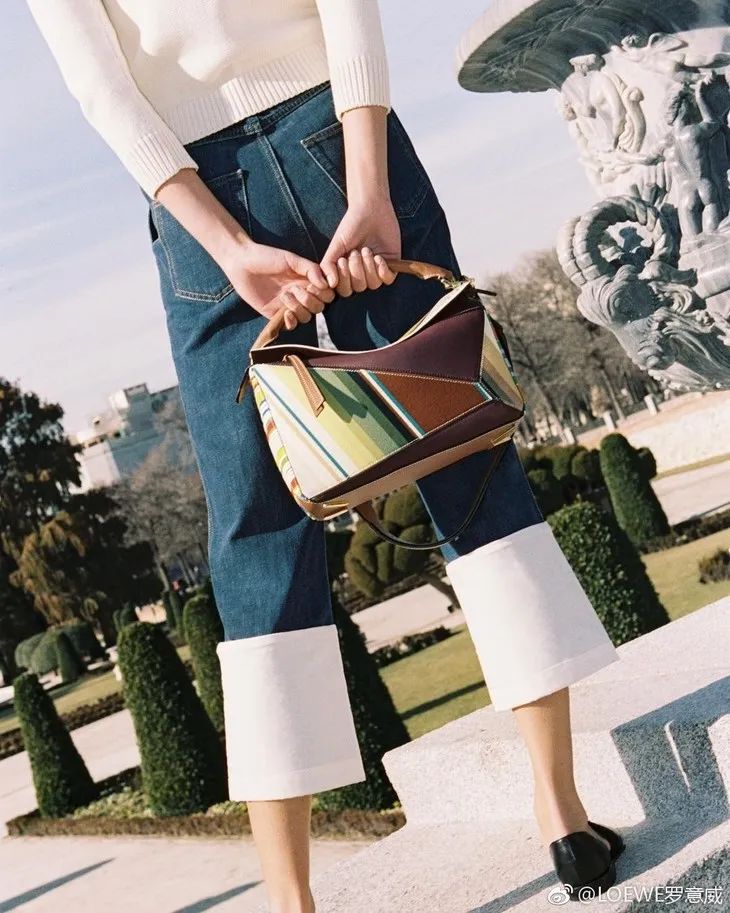 值得一提的是,因为这样独到的剪裁拼接设计,让Puzzle在颜色以及款式上有了更多的可能性,一举成为LOEWE经典包款。