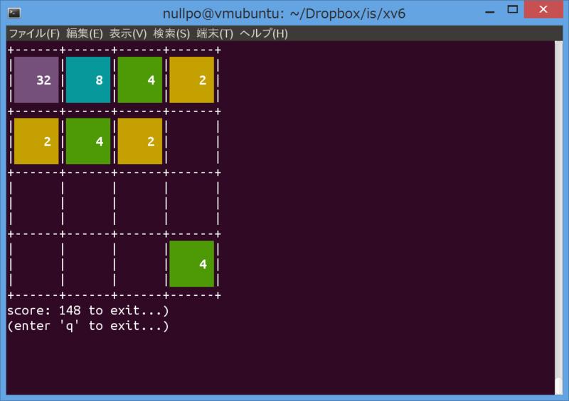 这个 2048 的质量很高。Yuichi 老是在玩。顺便提一句,这个 2048 使用的是 non-line buffering 输入,这是 Xv6 原本没有的功能。为了支持这一功能,ioctl 被添加进来作为 read 和 write 之外的另一个 devsw 动作,另外还添加了用来控制 ICANON 和 echo 的与 termios 相关的新功能。因此,唯一能以如此高的完成度玩 2048 的 Xv6 就运行在 GAIA 上。