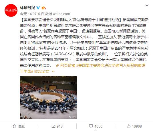 3月27日讯据美国福克斯新闻网报道,美国特朗普政府要求联合国安理会在有关新冠病毒的决议中增加措辞,明确写入“新冠病毒起源于中国”,但遭到拒绝。