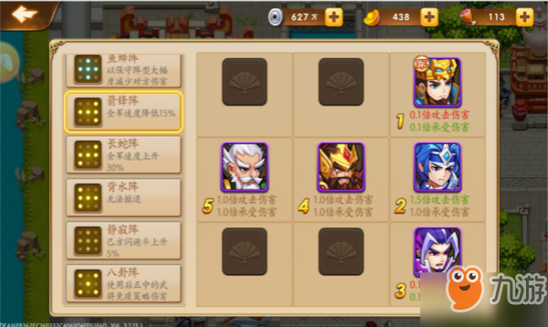 1.两翼1,3号位放智将:诸葛亮,法正通关奖励必要武将,因为两翼0.1倍攻击且0.1倍承伤,放武将浪费攻击,而智将本身就普攻低且身板一些拥有特殊高防专属的智将除外,如诸葛亮,选择两翼非常的契合,只需要使用策略和技能即可;