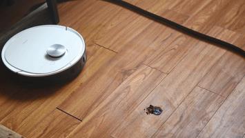接着,我又将酱油与淀粉混合之后倒在了地板上,测试科沃斯超能王的拖地能力,可以看到超能王在开启了强拖模式之后,面对这样的顽固污渍也是只经过了一次地板就又恢复如初了,而且配合一次性的免洗拖布,用完即撕,无需手动清洗。根据官方的介绍,科沃斯超能王的强拖模式每分钟可以往复运动480次,这样的高频率往复完全媲美模拟人工的拖地效果。