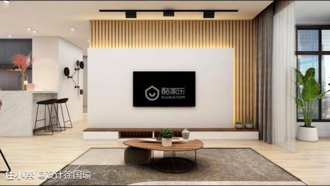 电视背景采用了竖条木纹的设计背景墙,内藏灯带设计显得高级又不失情调。整体公寓户型不算大,但是通过合理的设计,在保证功能齐全的基础上,还能拥有舒展的活动空间,客厅区域承载了多种功能,所以预留了相当宽的空间,即使同时来多位客人也不会觉得局促。