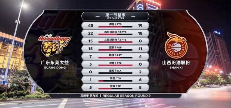 首节上来,威姆斯率先在低位投进高难度跳投,随后又反击一条龙打成2+1,苏伟跟进上篮得手,开局状态火热的威姆斯又在外线射进三分,广东一波10-0的开局迅速打停山西,调整过后原帅终于在罚球线为山西打破僵局,富兰克林突破抛投得手并造成犯规,杜润旺篮下吃饼扣进两分,布鲁克斯再中远投后场上分差被继续扩大到二十分以上,闫鹏飞跟进扣篮得手。首节结束,广东43-19领先山西。