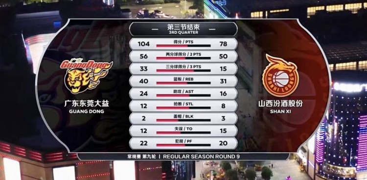 易边再战,广东直接派上全华班阵容,葛昭宝高位投进中距离,周鹏快攻中拉杆上篮得手,富兰克林底角射进三分,周鹏和赵睿相继在反击中送出精彩暴扣打停山西,调整过后富兰克林强杀篮下打成2+1,随后又命中撤步远投,个人连拿六分,曾繁日篮下吃饼将球打进,徐杰底角也中三分,刘冠岑跟进上篮得手并造成犯规,山西一波7-0的攻势稍稍缩小分差,杜润旺压哨球没能命中。三节结束,广东104-78领先山西。