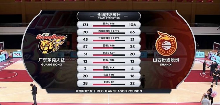 次节开局,富兰克林突破挑篮打成2+1,首节状态火热的威姆斯罚球线稳稳再中半截篮,任骏威跟进补篮得手,此后场上变成了富兰克林和威姆斯的对飚大战,暂停调整过后赵锦洋外线也中远投,威姆斯跟进送出精彩双手暴扣,广东又是一波14-0的攻势,场上分差也已经超过三十分,翟逸终于在低位投进止血两分,布鲁克斯快下接球扣空篮得手,胡明轩空切上进反篮。半场战罢,广东73-43领先山西。