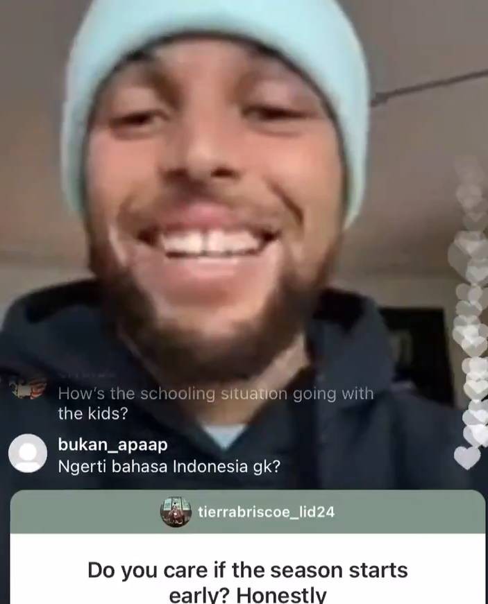 直播吧11月5日讯昨日,库里在社交媒体直播。当有球迷问到库里是否在乎新赛季早点开始。库里表示:“这个问题太好笑了哈哈哈,毫无疑问,我当然在乎!我当然想早点打球,我想早点回到场上和对手竞争,和我的队友们