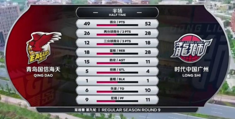 次节开局王庆明一内一外连拿5分带队追上比分,广州则依靠哈斯低位连着拿分做出回应。除了哈斯的火热状态外,谷玥灼的三分帮助广东最多取得9分领先,青岛迅速叫了暂停及时止损,王庆明再度得手,张骋宇两次快下拿分帮助青岛回敬一波8-0稳住局势。然后青岛末段再度哑火,最后3分钟里仅得2分,广州则再一次最后时刻扭转局面反超比分,邵英伦和摩尔最后拿下4分帮助广州以52-49领先青岛结束上半场。