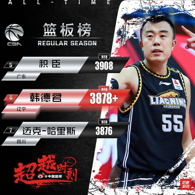 直播吧11月6日讯在今天不敌山东的比赛中,韩德君拿到25分17篮板。本场比赛过后,他的生涯总篮板数达到3878,超越迈克-哈里斯升至历史第六。目前排在前五的分别是易建联(5611)、巴特尔(4978)