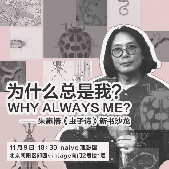 活动有幸邀请到歌手叶蓓,音乐人张笛与诗人蓝蓝,一同与朱赢椿老师欣赏这形貌清奇,大异其趣的虫子之诗。