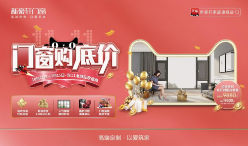 2020年,疫情使得整个家居建材行业线下实体面临前所未有的挑战,同时也促进了新零售业态的迅速发展。面对疫后的年度关键之战——天猫“双十一”,各大品牌纷纷摩拳擦掌,打出了五花八门的营销组合拳,新豪轩门窗也不例外。