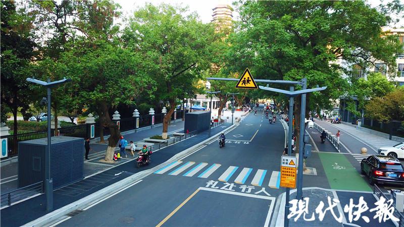 例如建设精品示范街道,加大公园绿地、景观路、河岸、城市进出口、商业街区、交通枢纽等重要区域绿化建设和功能完善力度,优化景观照明建设,推进非机动车停放,增强道路保洁作业实效,提升公厕管理服务水准,推进生活垃圾分类工作,全面改善背街小巷环境,优化路通组织,改善路段交通组织等破解停车难、交通拥堵,背街小巷治理等 城市病 的一系列举措, 一针一线 绣出城市生活新面貌,实现城市环境更洁美、交通更畅通、治理更智慧,人民群众更有获得感、幸福感、安全感。(现代快报记者 葛小林 / 文 赵杰 / 摄)