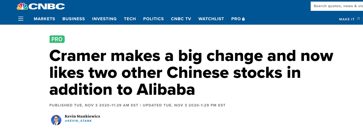 吉姆 克莱默认为,今年中国通过严格而迅速的行动有效制止了疫情,在此过程中,百度和京东将会随着中国经济的复苏而从中受益。